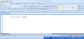 Jika kamu ingin mengetik dalam huruf-Korea, cukup klik tombol ketiga, dan language bar mu akan berubah menjadi seperti gambar berikut.
